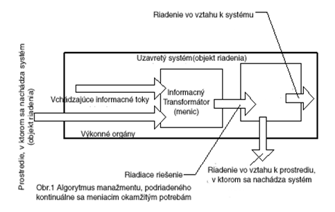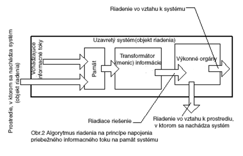 Vstupný informačný tok (vonkajšie a vnútorné informačné väzby) prichádza do prevodníka - transformátora, kde sa na základe momentálne prebiehajúcej informácie vypracováva priebežné riešenie. To je následne predávané výkonným orgánom.